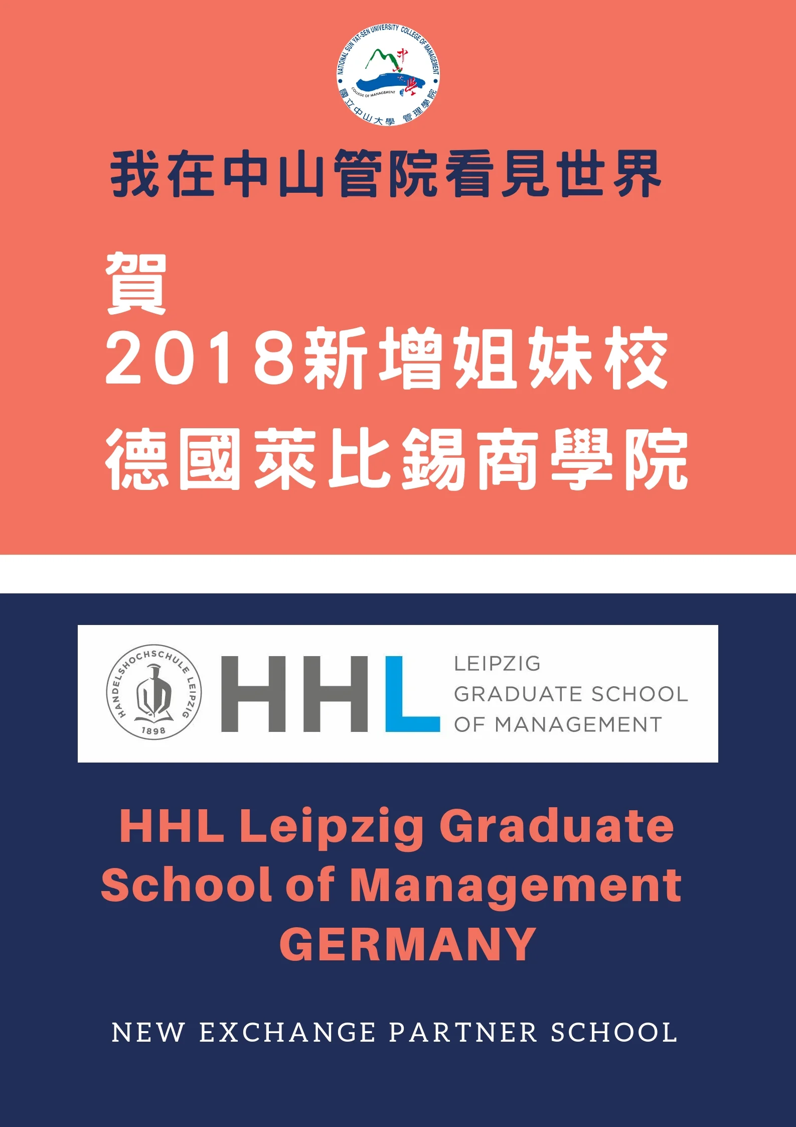 THE CIA CENTER OF COLLEGE OF MANAGEMENT PROUDLY ANNOUNCED THAT WE SIGNED AGREEMENT WITH OUR PARTNER SCHOOL- HHL Leipzig Graduate School of Management IN GERMANY. THE AGREEMENT WAS SIGNED BY DEAN OF COLLEGE OF MANAGEMENT (PROFESSOR SHYH-JER CHEN). HHL Leipzig Graduate School of Management RECEIVED aacsb ACCREDITATION AND WAS RANKED AS NUMBER ONE Favorite Business School in Germany BY trendence Graduate Barometer AND WAS FOUND IN 1898.