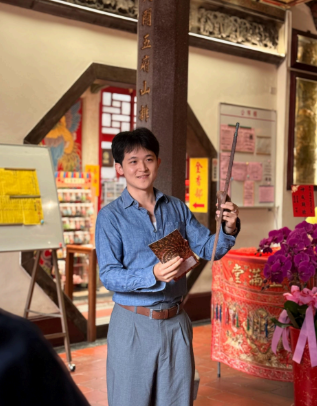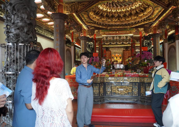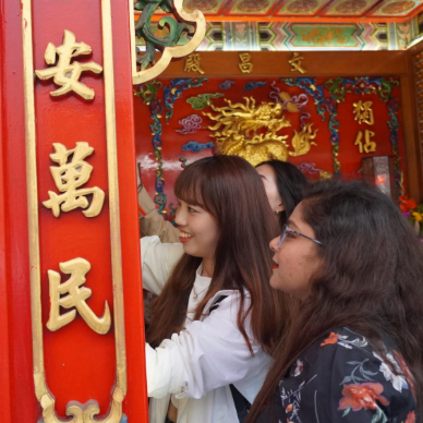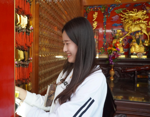 The pilgrimage began at the Hamasen Daitian Temple, which is a local landmark. Amidst the swirling incense, students held blessing cards and prayed to the Lord of Culture and Literature, also known as Wenchang Dijun, and local deities for wisdom and exam success. For students who usually spend their days grinding away at their studies on the mountain and sea-bound Sizihwan campus, the tranquility of the historic district in Hamasen provided a much-needed sense of peace and a break from their busy academic schedules.